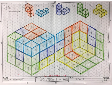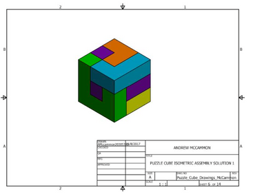 Project Description: In my high school pre-engineering class every student was tasked with designing two puzzle cubes each with different solutions, and each with 6 different interlocking pieces. The goal was to help an imaginary furniture company use leftover scrap wood reduce production costs and waste. The project started with each piece being sketched and then built in autodesk inventor. After each piece was designed, assemblies were made in inventor as well. Once design the CAD models were complete, the physical puzzle cubes were made in addition to packaging so the product could be "sold."
